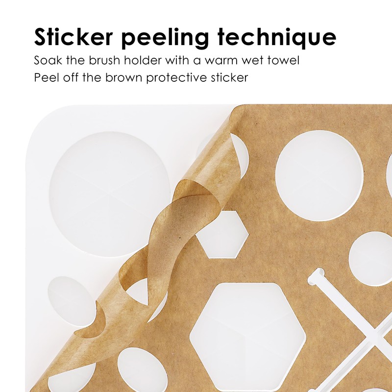 - There is a brown protective sticker on the brush tower. Please remove it before using it! It comes off easily when the brown cardboard is wet. Just put the brush holder under warm running water and rub it a bit and then start at the corner to peel it off.
