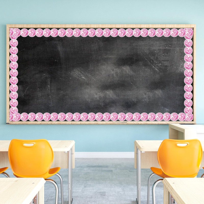 DodelyGz 68 Ft Pink Disco Border Trim,Disco Design Decorative Border Trim for Classroom Home and Theme Parties, Disco Decal Sticker