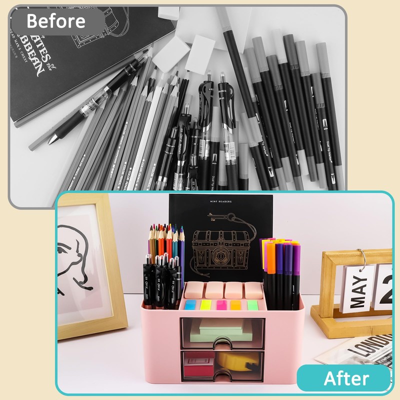 - Der Kids stifthalter hat fünf Fächer und zwei klare Schubladen, um Ihre täglichen und Büromaterialien für Ihren Schreibtisch zu speichern und zu organisieren.