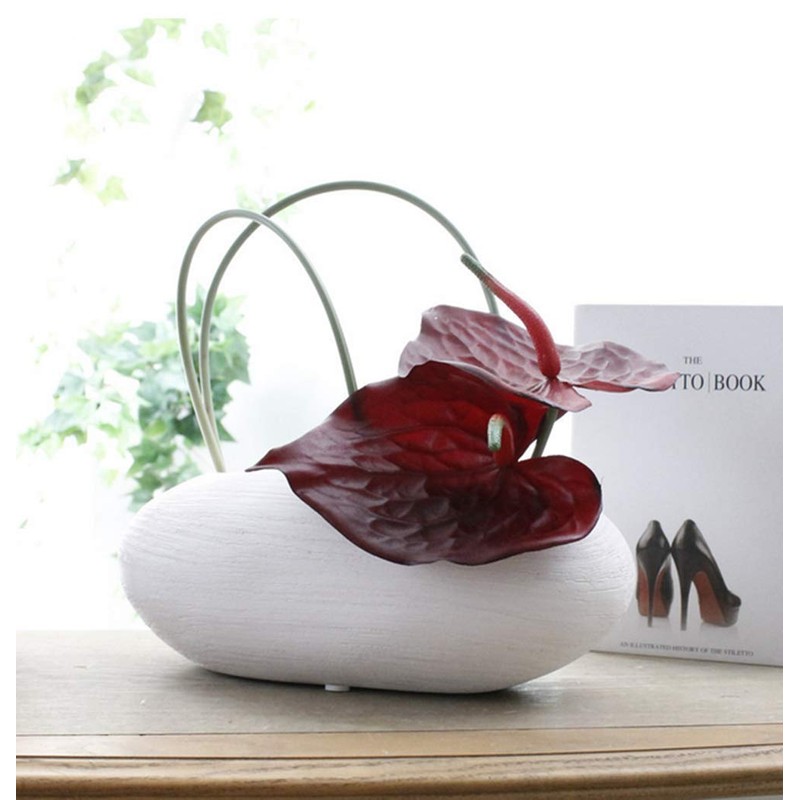 DODXIAOBEUL 3 PCS 27" Artificial Anthurium Lily Flowers for Home Decor Bouquet and Green Leaf and Bridal Wedding Festival Decoration Small Flower Flower Arrangement,UV Resistant No Fade (White)
