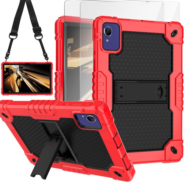 Doemoil Case for 10.1 inch Weelikeit P16W Tablet/APOLOSIGN Maxsignage EP103A Tablet/Baken tab 10 Lite D10A Tablet/VASOUN M10 Tablet Built in Kickstand with Screen Protector (Red/Black/2 PCS)