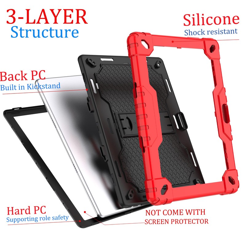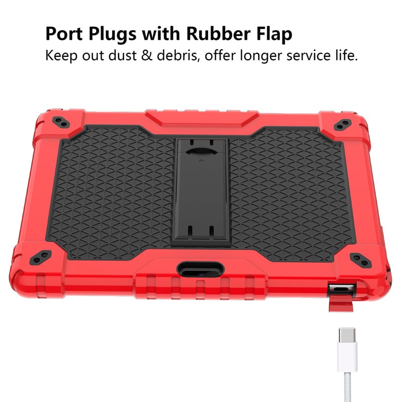Doemoil case for Dragon Touch Notepad K10, MAX10 Plus Case, Built in Stand Shoulder Strap for FEONAL K118 K101 Veidoo T80 Plus 10.1 inches Tablet (Red/Black)