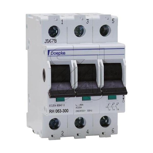 Wichtiger Hinweis: Beachten Sie, dass elektrotechnische Arbeiten nur durch Elektrofachkräfte oder unter deren Leitung und Aufsicht ausgeführt werden dürfen. Beachten Sie ggf. abweichende länderspezifische Normen und Vorschriften der Elektroinstallation und lassen Sie sich durch einen örtlichen Elektroinstallateur beraten. Geräte mit einem Anschlusswert > 380V/400V benötigen einen Starkstromanschluss und dürfen nur von einem zugelassenen Elektrofachbetrieb angeschlossen werden. Für Geräte mit einer Nennleistung > 12KW benötigen Sie die Zustimmung Ihres Netzbetreibers (Deutschland, andere Länder ggf. abweichend). Hauptschalter RH 063-300 Anzahl der Schalter 1, Max. Bemessungsbetriebsspannung Ue bei AC 415V, Bemessungsbetriebsspannung 240... 415V, Bemessungsdauerstrom Iu 63A, Bemessungsdauerstrom bei AC-23, 400 V 0A, Bemessungsdauerstrom bei AC-21, 400 V 63A, Bemessungsbetriebsleistung bei AC-3, 400 V 0kW, Bemessungskurzzeitstromfestigkeit Icw 12,5kA, Schaltleistung bei 400 V 31kW, Bedingter Bemessungskurzschlussstrom Iq 12,5kA, Polzahl 3, Anzahl der Hilfskontakte als Öffner 0, Anzahl der Hilfskontakte als Schließer 0, Anzahl der Hilfskontakte als Wechsler 0, Gerätebauart Komplettgerät im Gehäuse, Geeignet für Verteilereinbau, Farbe des Betätigungselements schwarz, Ausführung des Betätigungselements Kipphebel, Verriegelbar, Anschlussart Hauptstromkreis Schraubanschluss, Schutzart (IP), frontseitig IP20, Schutzart (NEMA) 1, Lastrenn- bzw. Hauptschalter trennen elektrische Verbraucher oder Anlagenteile vollständig und allpolig von der elektrischen Versorgung. Sie schalten auch unter Last oder Überlast. Sie werden zur Abschaltung für Wartungsarbeiten und zum Anlagenschutz eingesetzt. Die Geräte der Baureihe RH sind modulare Hauptlastschalter mit Trennfunktion und zeichnen sich durch eine hohe Verschleißfestigkeit der Kontakte aus. Die Ausführung ermöglicht den Einsatz einer Schaltsperre und entspricht den internationalen Bauvorschriften. Eigenschaften: modularer Aufbau,