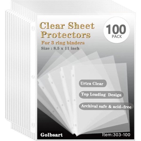 • Durability and Quality: Golbsart Clear sheet protectors for 3 ring binder are crafted from high-quality polypropylene.These PVC-free protectors feature clear page protectors for 3 ring binder with reinforced edges that resist tearing. The robust design of clear sleeves for binders ensures that documents remain secure and intact. Plastic paper sleeves offer additional protection against spills and smudges. Finally, binder clear plastic sleeves provide a clean and professional appearance.