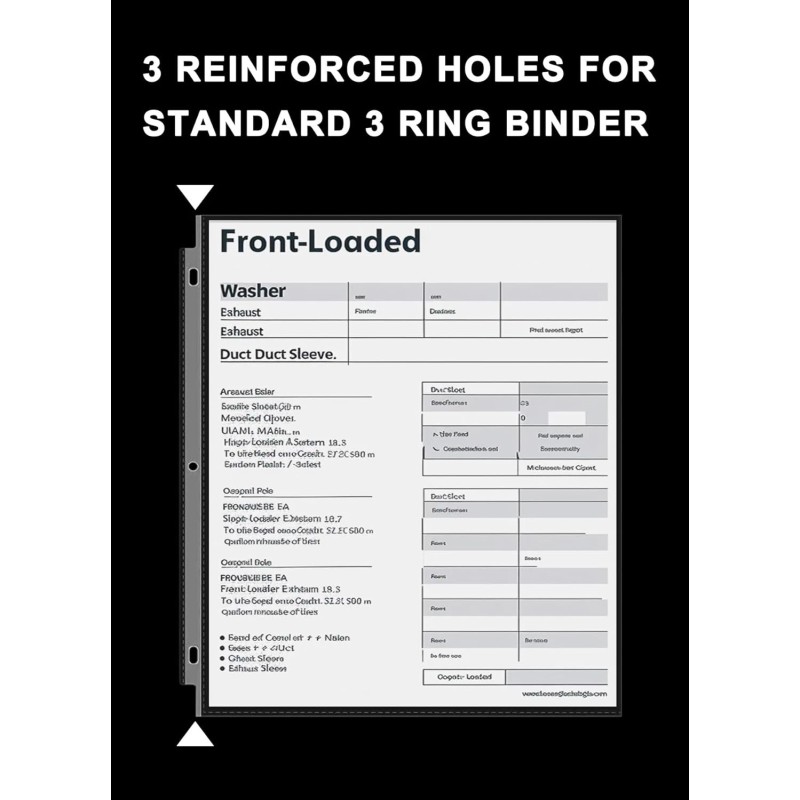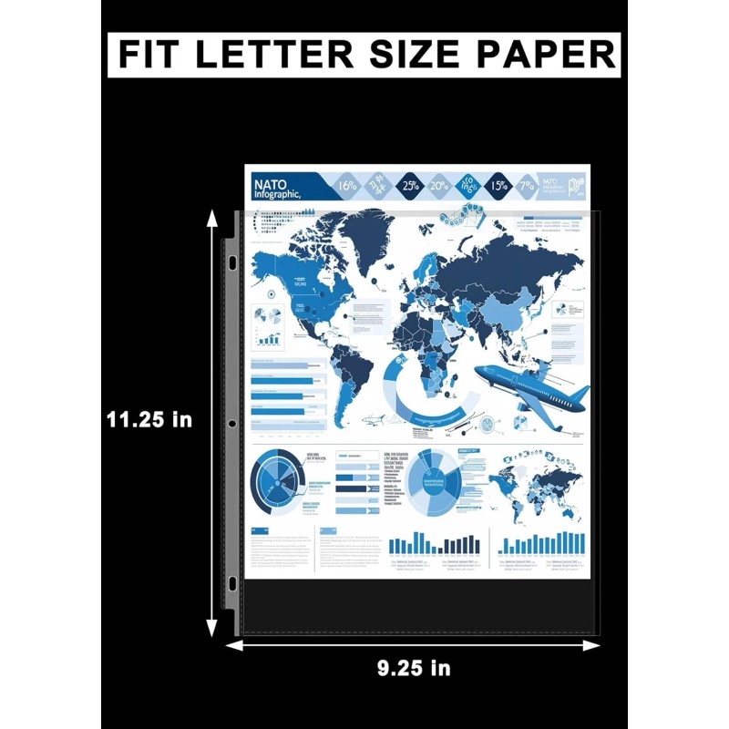 • Document Protection Enhanced: Each clear pocket sleeves includes 100 sheet protector units measuring 9.25 x 11.25 inches, specifically designed to comfortably hold 8.5 x 11 inch letter-size paper. These binder sheet protectors are capable of accommodating up to 2 sheets per pocket.With clear binder sheet protectors, visibility and access to your documents.Additionally, our sheet protectors heavy duty design ensures durability. The versatile binder sleeves fit seamlessly into standard 3-ring binders.