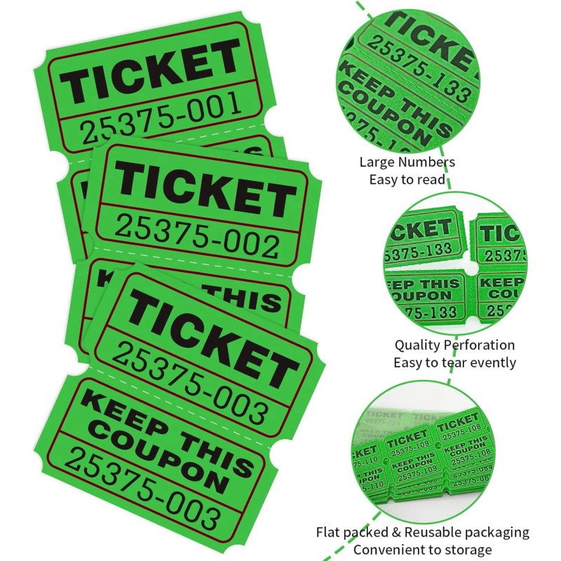 - The Green colored raffle tickets are consecutively numbered and perforated, making it easy to tear off multiple tickets at once. The large numbers are easy to read and there are duplicate numbers for tracking purposes.