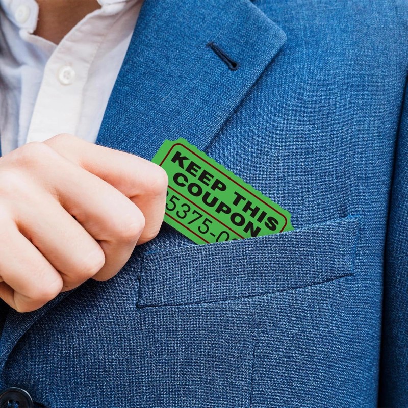 - To use the tickets, players keep the "Keep this coupon" part while the other part is placed in the drawing. The back of the ticket part has space for Name, Address, and Phone number.