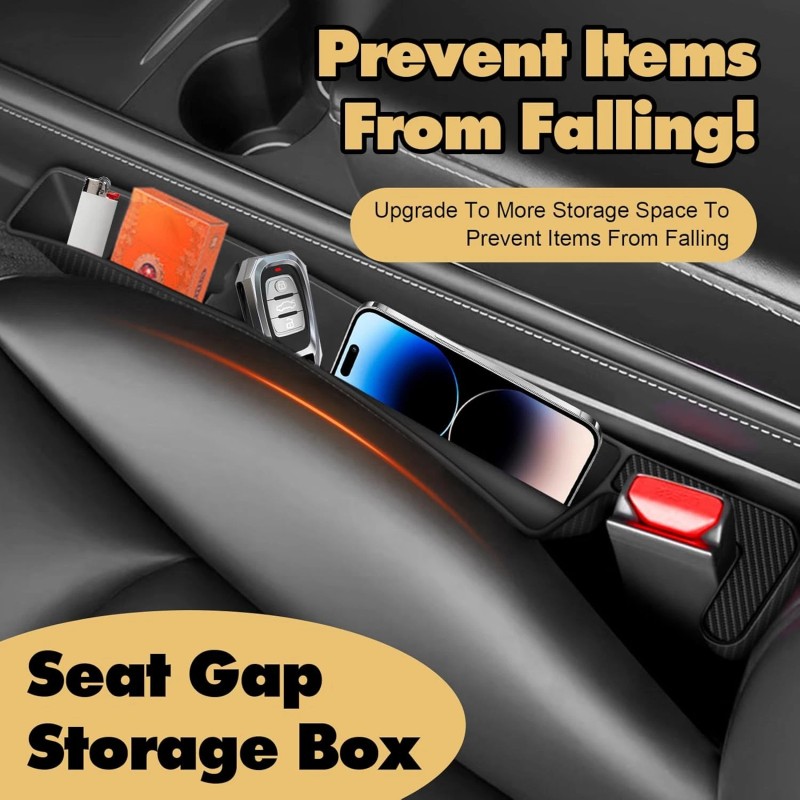 - 【Multi-Functional】Maximize your car’s storage with our versatile seat gap storage box. Perfect for storing small essentials, it’s ideal for both everyday use and long-distance travel. In addition to holding items that fall into the seat crevice, our seat gap storage box also serves as a storage space and has a hole at the bottom for charging your mobile phone with a data cable.
