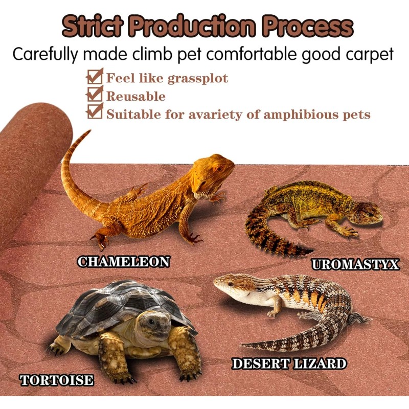This soft carpet fits many species of reptiles, snakes, turtles, lizards and insects . It can protect reptiles away from wet, dirt and scrape. You can also used this carpet with plastic mat together.