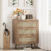3 Drawer Dresser for Bedroom Rattan Dresser Chest of Drawers with Spacious Storage Boho Clothes Storage Nightstand for Living Room