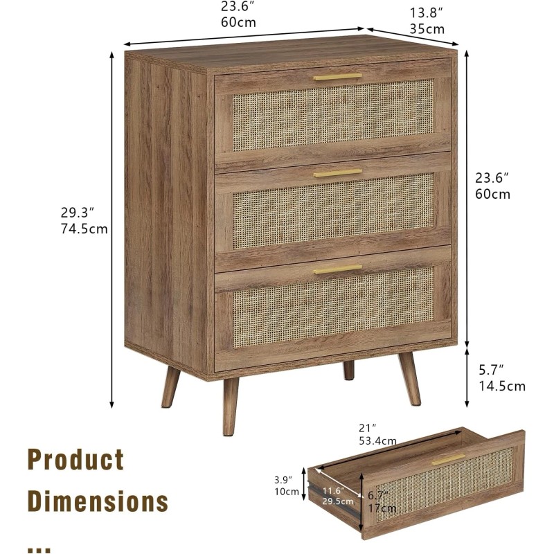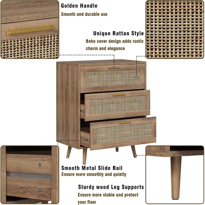 Does not apply 3 Drawer Dresser for Bedroom Rattan Dresser Chest of Drawers with Spacious Stora