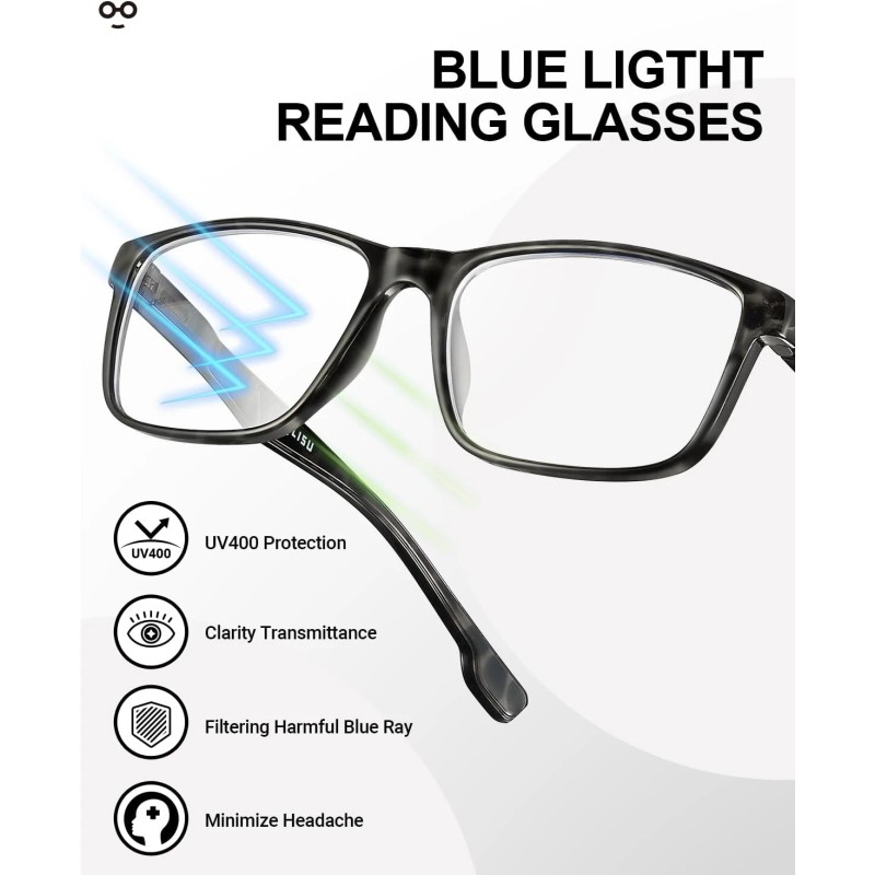 Does not apply 4 Pack Reading Glasses Men Blue Light Blocking with Spring Hinge, anti Eyestrain