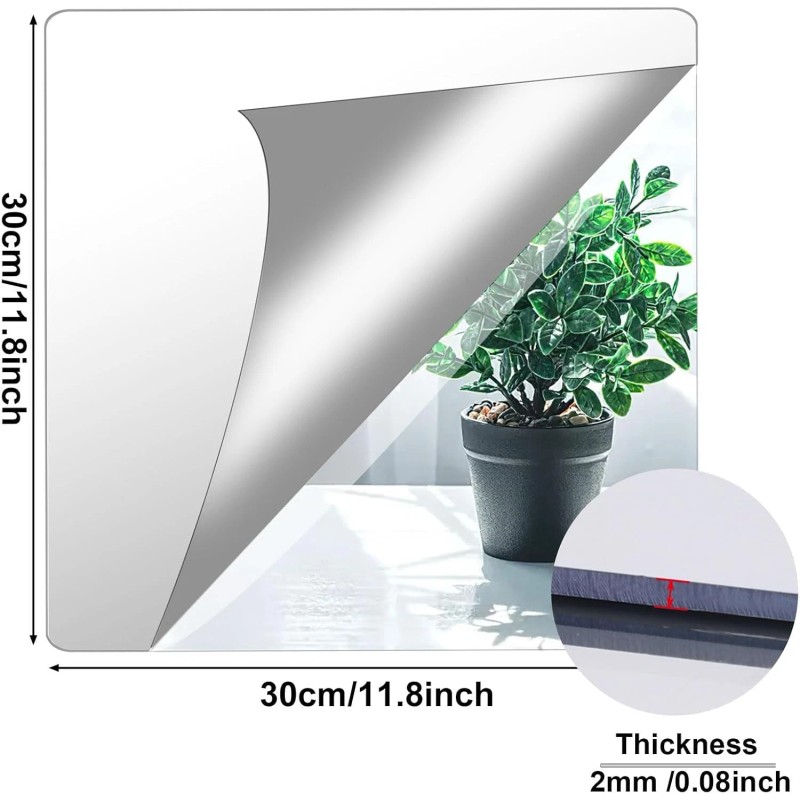 - What You Will Get: 4 piece mirror tiles self-adhesive, 12inch x 12inch / 30x30cm (thickness: approx. 2mm), as well as a free sticker. You can use your imagination to arranging mirror sheets into any shape to decorate the walls.