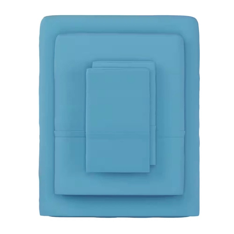 Does not apply 4-Piece Blue Solid 75 Thread Count Polyester Full Sheet Set