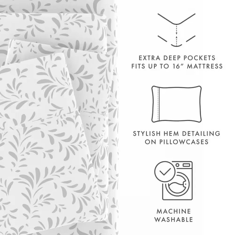 Does not apply 4-Piece Gray Floral Microfiber King Sheet Set