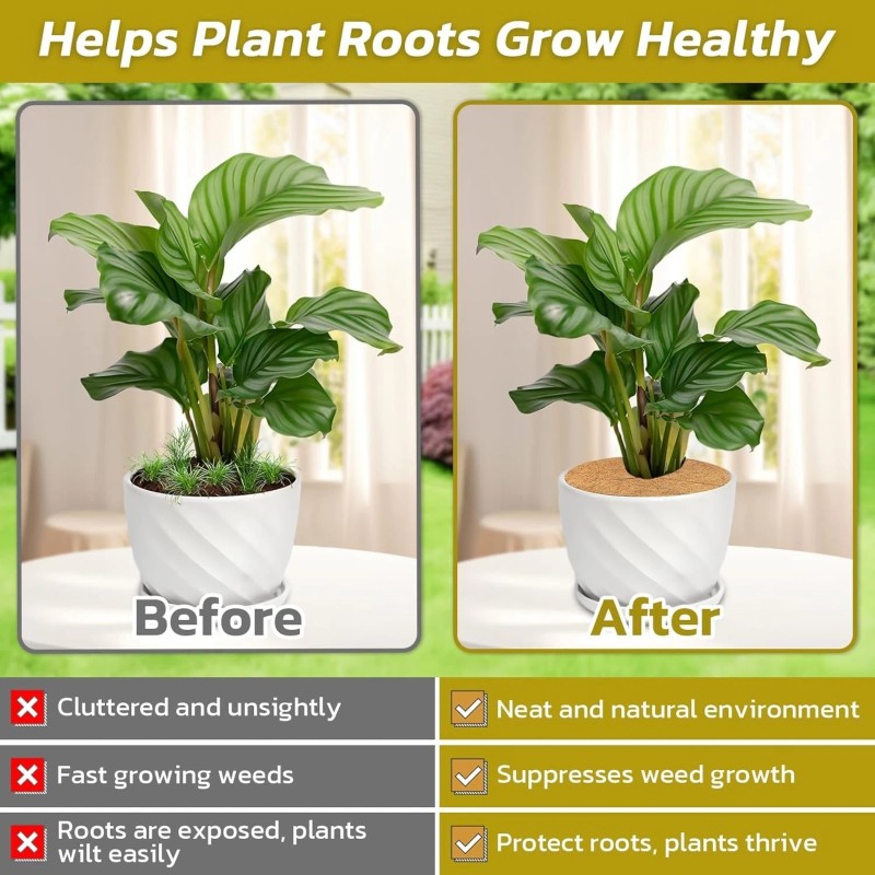 - GREAT Endurance & Moisturization: Our coco mulch disc ring is 1/4" thick, coco mat is the perfect way to mulch the plants to aid in holding water, it can well maintain the moisture of soil in the plant pots, keep the plant needed moisture and mimeral and prevent plants from drying out