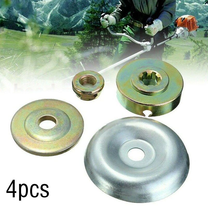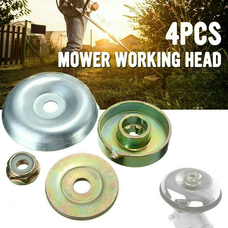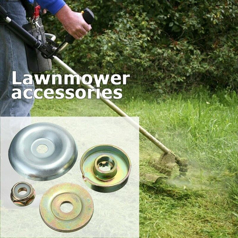 4pcs Lawn Mower Metal Gearbox Blade Fixed Kit Protective Cover+Plate+Thread Nut