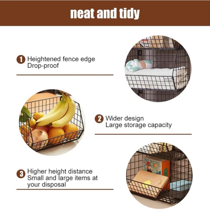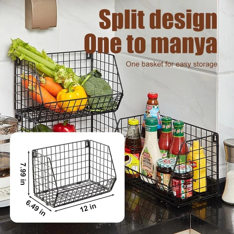 - The open wire mesh structure promotes airflow, keeping fruits and vegetables fresh and preventing moisture buildup. This design also provides clear visibility of stored items, making it easier to organize and access your essentials.