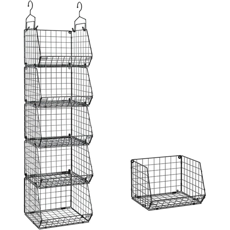 5 Tier Closet Hanging Organizer,Closet Organizers and Storage,Hanging Closet Organizer,Clothes Hanging Shelves,Wire Storage Basket,Wall Mount Metal Basket Bins