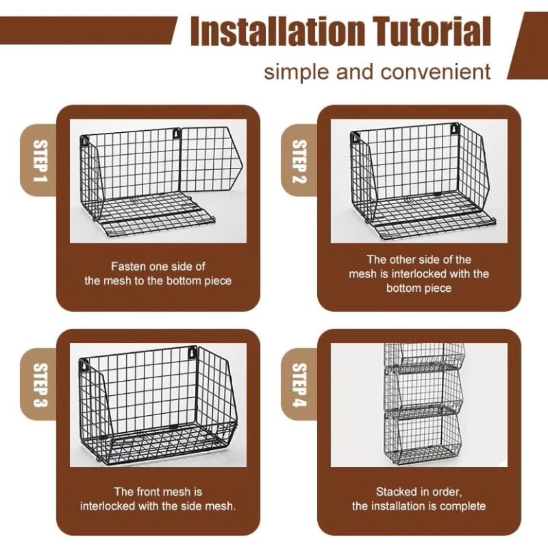 - Enjoy multiple placement methods! Use the baskets individually, stack them securely, or mount them on the wall. With included 6 sturdy metal hooks, hang the baskets on closet rods or garment racks, or simply place them on a desktop. Customize your storage according to your needs.