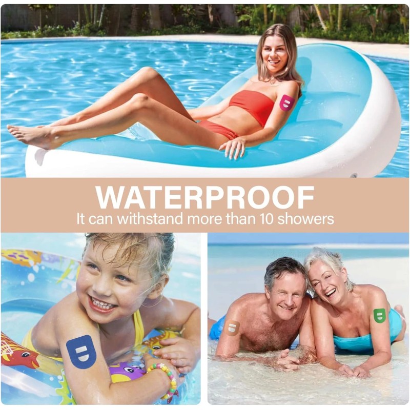 - Waterproof and sweatproof : These patches are both waterproof and sweatproof, and their latex-free, hypoallergenic properties allow your skin to breathe easy. With our tape you can rest assured that swimming and showering can be well adapted to your active lifestyle