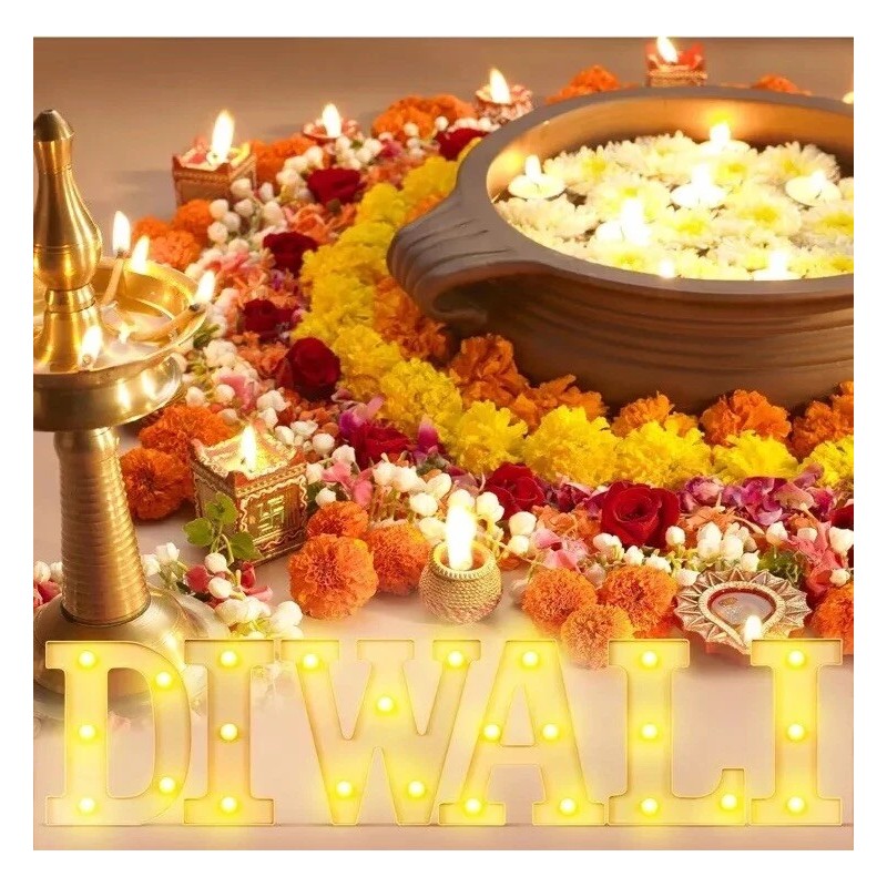 Does Not Apply 6 Pcs Diwali Light up Letters 6.3 Inch Battery Powered Sign Letter Mandir