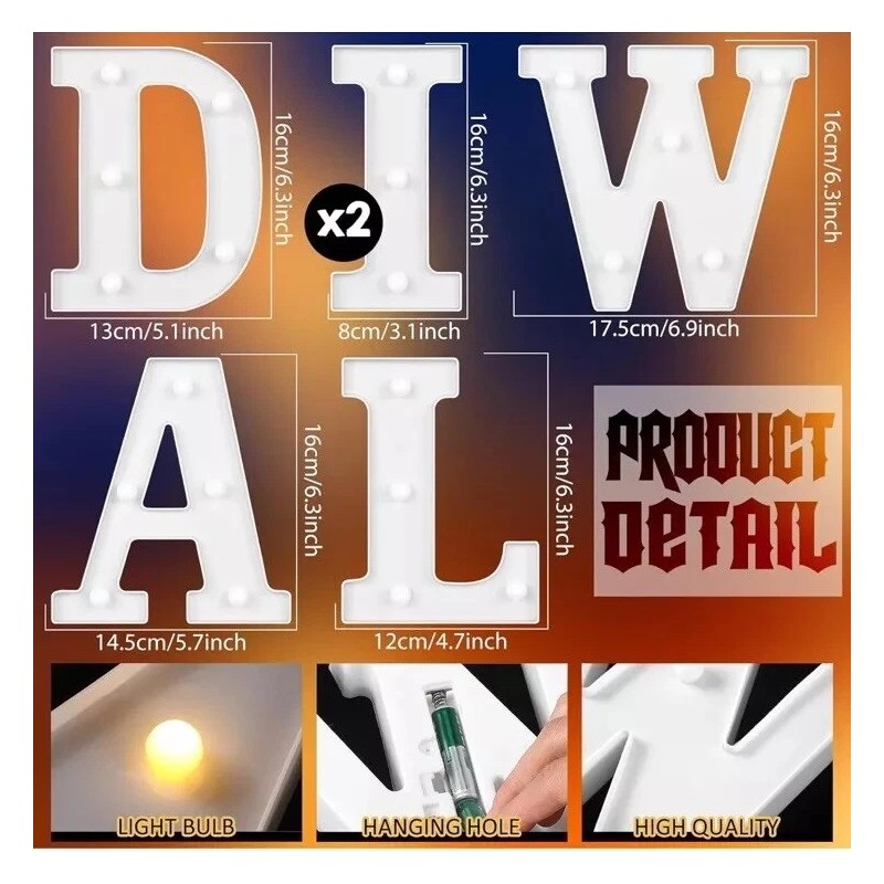 Does Not Apply 6 Pcs Diwali Light up Letters 6.3 Inch Battery Powered Sign Le...