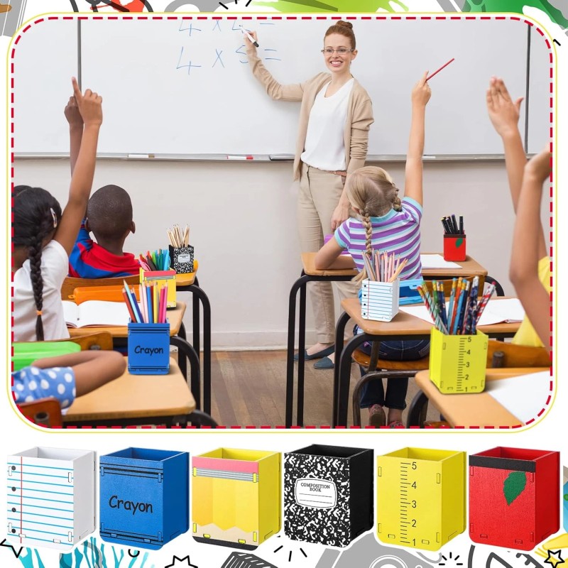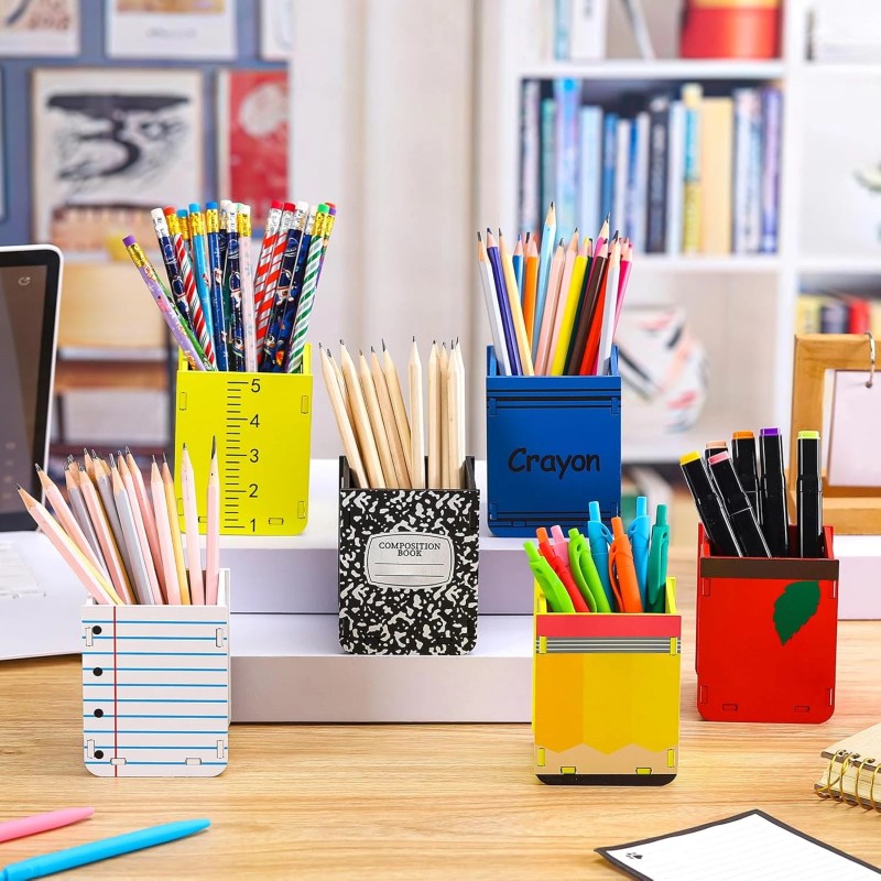 • Package Contents: with 6 pencil holder included notebook line crayon composition book pencil ruler in each package, you can mix and match to suit your personal style or classroom theme, making this wooden crayon desk holder a customizable solution for every organizational challenge