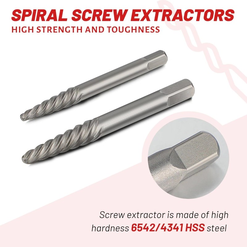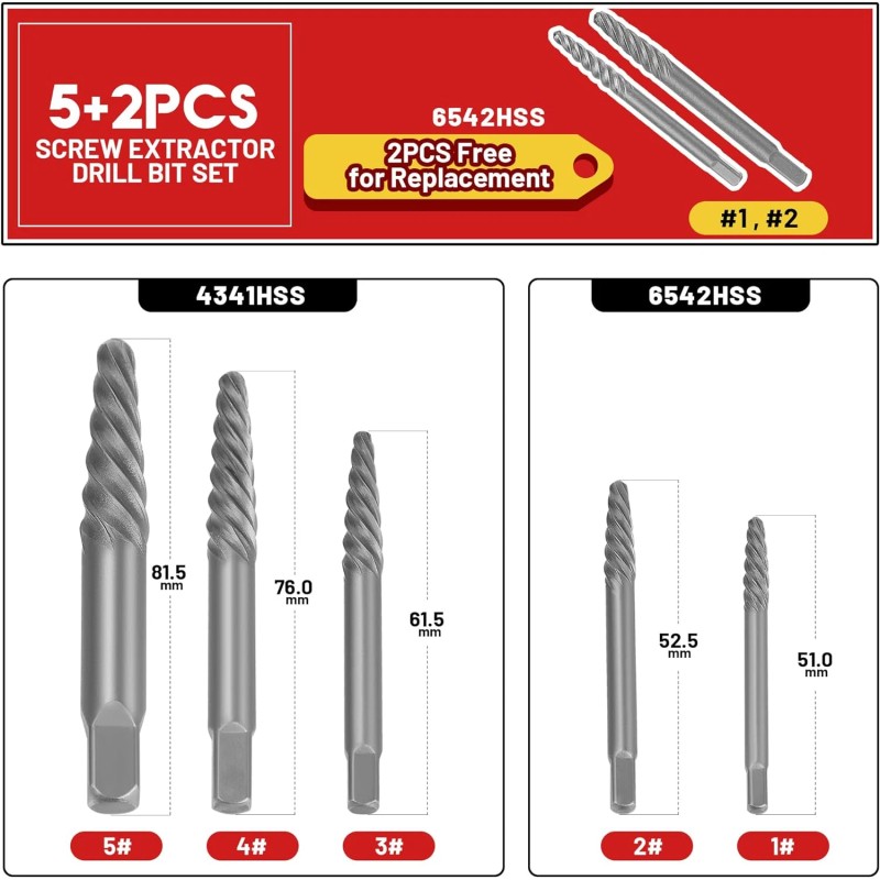 - ★ Diverse Sizes - 7 pieces Extractor Screw Extractor Set. Screw extractors include 2*1#, 2*2#, 3#, 4#, 5#. Impact drive for all kinds of job applications.