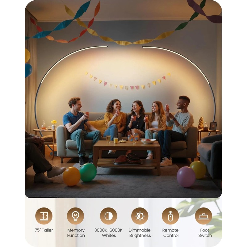 Does not apply 75 Inch Dimmable LED Arc Floor Lamp for Living Room with Foot and Remote Control