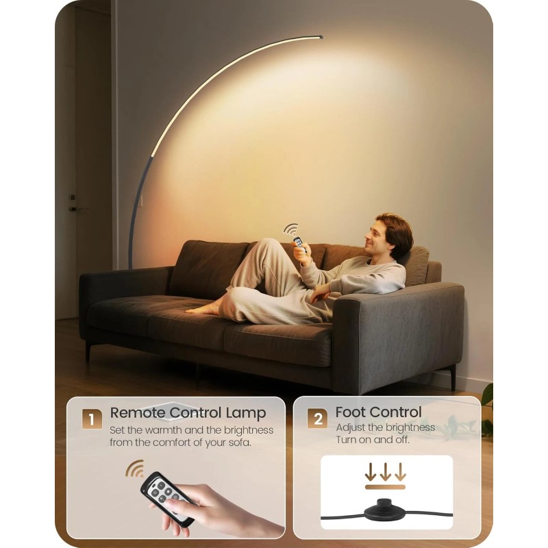 - Perfect for Every Room: This modern floor lamp for living room fits seamlessly into any room with its elegant design to complement contemporary decor, while remote and foot controls offer hassle-free adjustments. Place it beside a living room sofa, beside a bedroom bed, or in your home office for functional and stylish lighting