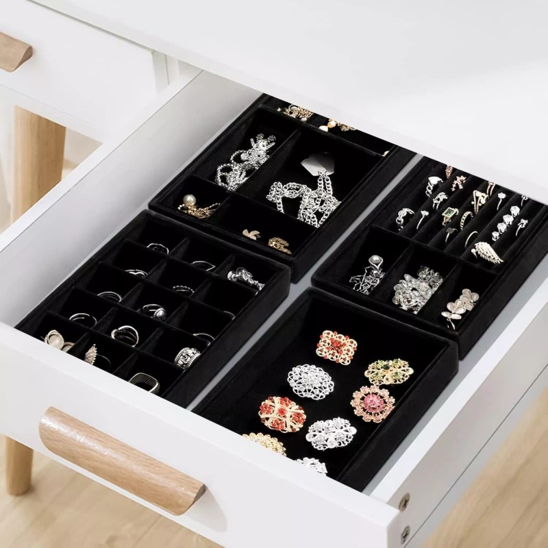 - Sturdy Materials: Jewelry trays are made of high-quality composite board covered with velvet fabric. They protect your jewelry from damage with a sturdy and durable structure that feels soft to the touch.