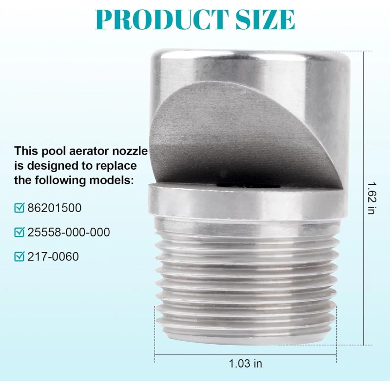 • 【Compatibility】Pool aerator nozzles are compatible with the following models: 86201500, 25558-000-000, and 217-0060. Upgrade your plastic aerator to a durable stainless steel pool aerator for improved performance.