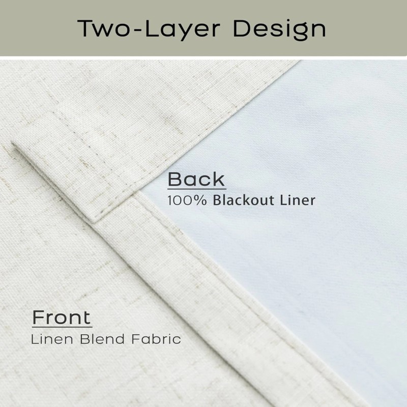 94 Inch Curtains Crossweave-Linen Blackout Unique Length Long Black Out 2 Panels Set for Bedroom Living Room