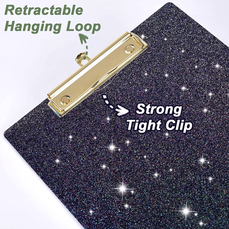 - 【Glitter Design】Bright color, classic and chic glitter elements make this colorful clipboard more attractive. With this unique clipboard, your daily works are far more fun and easy!
