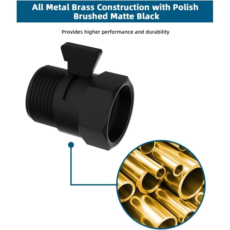 All Metal 2 Pack Shower Head Flow Control Valve, G1/2 Brass Shut-Off Valve with Metal Handle Lever, Shut off Water Flow Control Regulator for Handheld Shower, or Bidet Sprayer, Matte Black