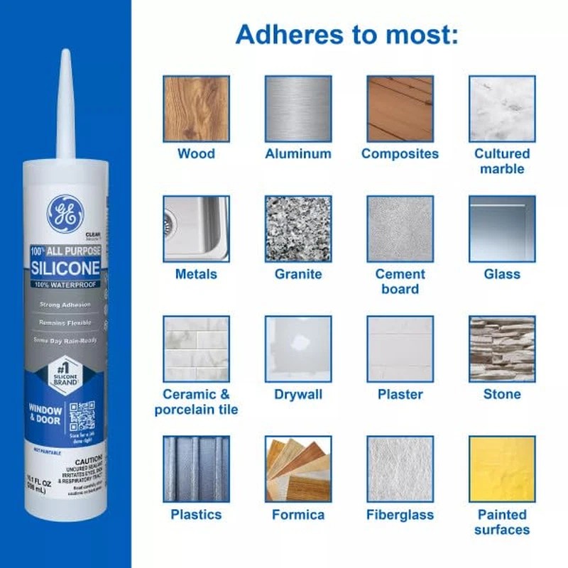 GE All Purpose Silicone Caulk - 100% Waterproof Silicone Sealant, Stronger Adhesion, Freeze & Sun Proof - 10 oz Cartridge, Clear, Pack of 1