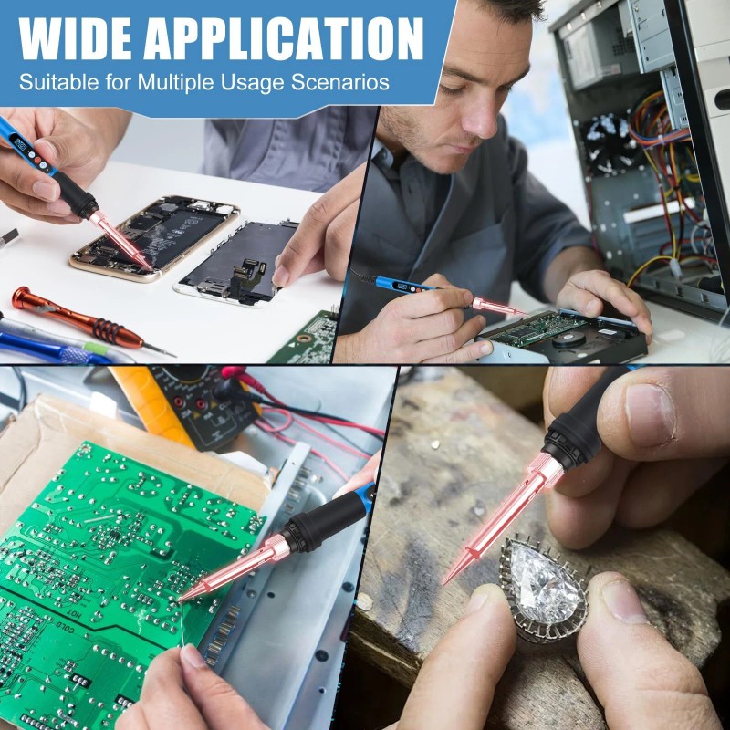 The ANBES Soldering Iron Kit is designed for a variety of applications, including welding circuit boards, PCB assembly, home appliance repairs, phone and computer fixes, and DIY projects. This versatile kit is perfect for both beginners and experienced users.