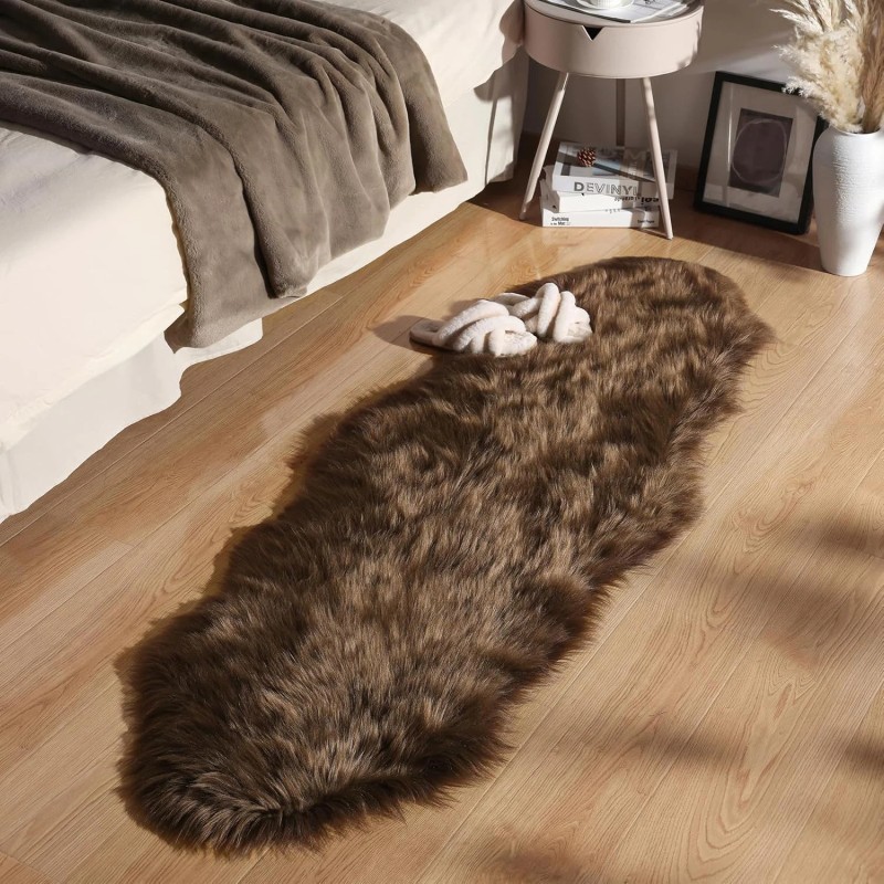 Ashler Faux Fur Rug, Fluffy Shaggy Area Rug Ultra Soft 2 X 6 Feet Sheepskin Fur Rug, Dark Coffee Fuzzy Rug Machine Washable Shag Rug, Nursery Decor Throw Rugs for Bedroom, Kids Room, Living Room