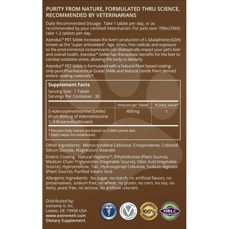Does not apply Azendus Natural Pet SAM-e 400mg, 30 Count, Same Butanedisulfon