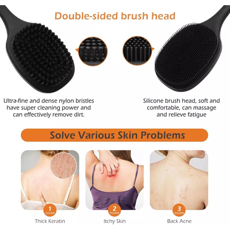 Back Scrubber for Shower, New Update Double Sided Body Scrub Brush Long Handle w