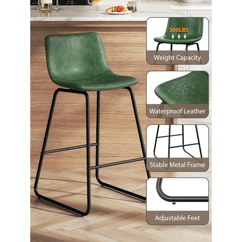 Bar Stools Set of 2, 26 Inches Counter Height Bar Stools with Back, Modern Faux Leather Barstools with Metal Legs and Footrest, Bar Chairs for Kitchens Island (Green)