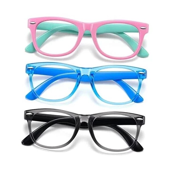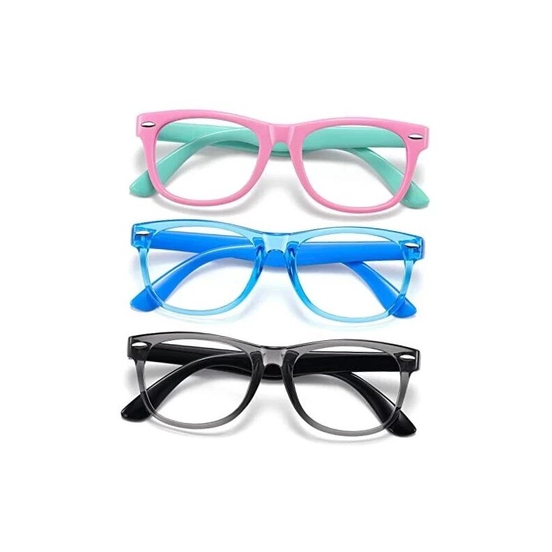 Does Not Apply Blue Light Glasses for Kids 3 Pack Blue Light Grey Black+pink Green+blue Clear