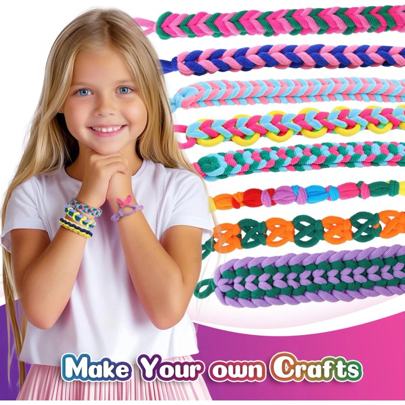 Bracelet Making Toys Refill Loops Elastic Cloth Band - Arts and Crafts Kit for Kids Weaving Loom Bracelets Kit 1000+ Colorful Fabric Loops - Birthday Gift for Girls Boys 6 7 8-12 Years Old