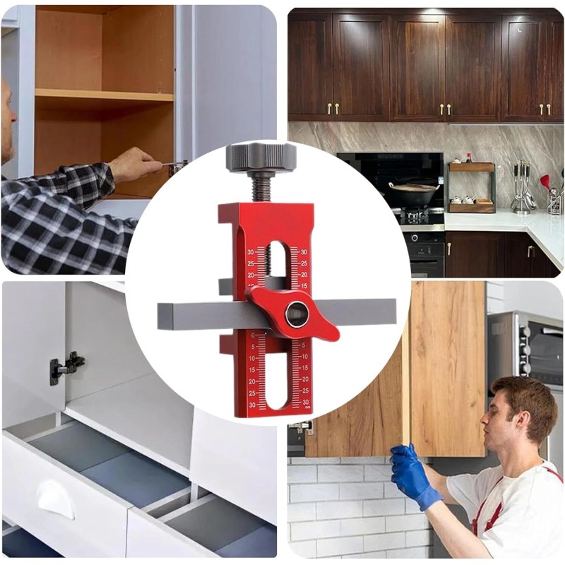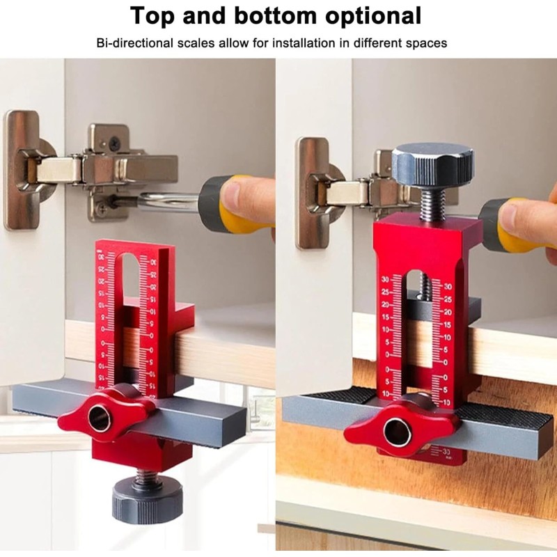 - VERSATILE DESIGN: Cabinet Door Installation Tool 2-in-1 mounting tool with adjustable positioner works for most cabinet doors, Features dual measurement scales from 0-30 units on both sides, with clear markings for precise hardware positioning,Accommodates wooden boards with thicknesses from 10mm to 40mm (0.39" to 1.57"). This versatility ensures compatibility with various door and cabinet styles, making it an essential tool for both DIY enthusiasts and professional carpenters
