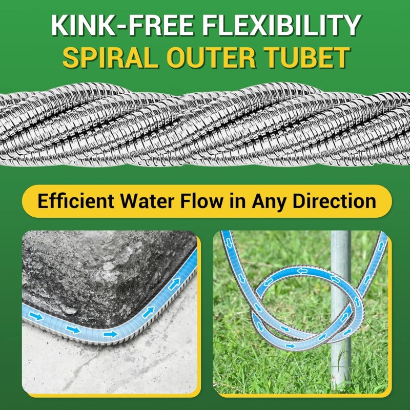 - 【Flexibility & Ease】: Featuring a stainless-steel spiral outer tube construction, 360 GADGET short garden hose offers exceptional flexibility without kinking. This design makes it incredibly easy to use, store, and connect, providing a hassle-free gardening experience. Its user-friendly nature ensures smooth operation and efficient water flow in any direction, adapting to your gardening layout with ease. Ideal for those seeking a convenient, kink-free, and adaptable gardening tool.