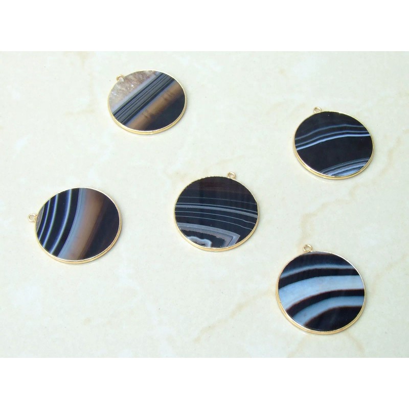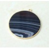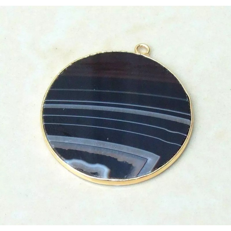 Jet Black Striped Agate Pendant, Gemstone Pendant, Thin, Slice Pendant,