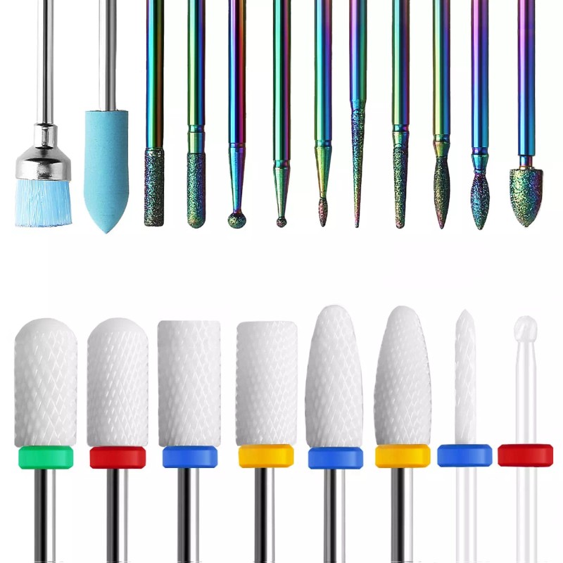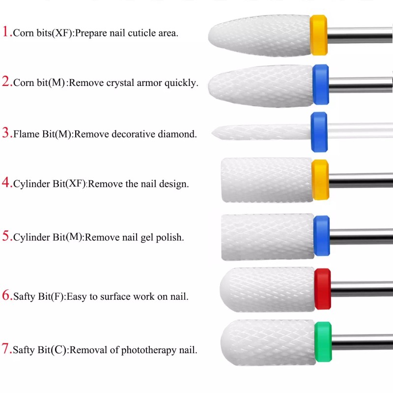 • ★ Satisfaga todas sus necesidades: el juego de brocas para uñas viene con cerámica y diamante, puede perforar, pulir, limpiar cutículas y acrílico, refinar, dar forma y eliminar la piel muerta. Garantiza que puedas obtener el tipo de acabado que deseas en el arte de uñas.