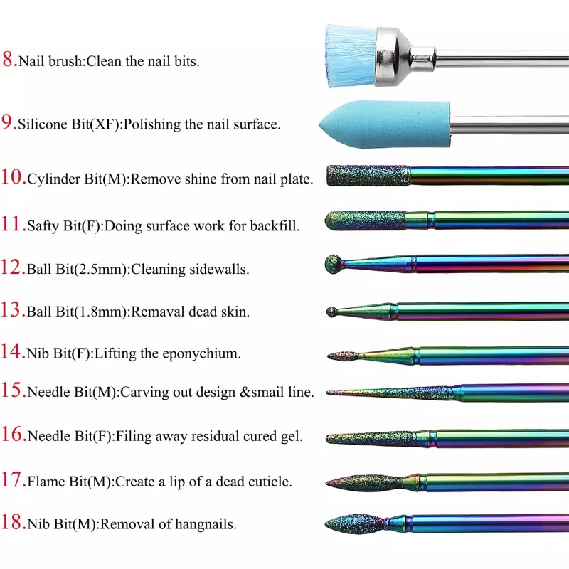 • ★Adecuado para todo tipo de uñas: nuestras brocas de diamante para uñas son la mejor opción para profesionales y usuarios domésticos. Proporcionan resultados maravillosos en uñas totalmente naturales y varios tipos de uñas de gel.