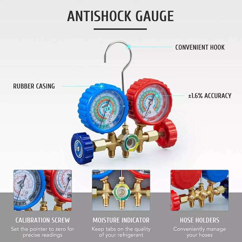 Juego De Manometros Profesionales Para Diagnostico Aire Acondicionado R134A 5FT